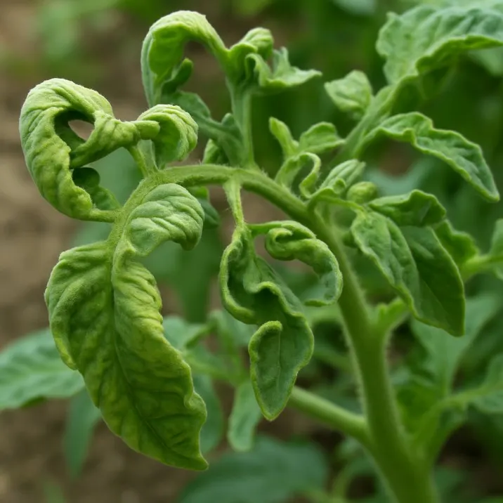 Curled tomato leaves