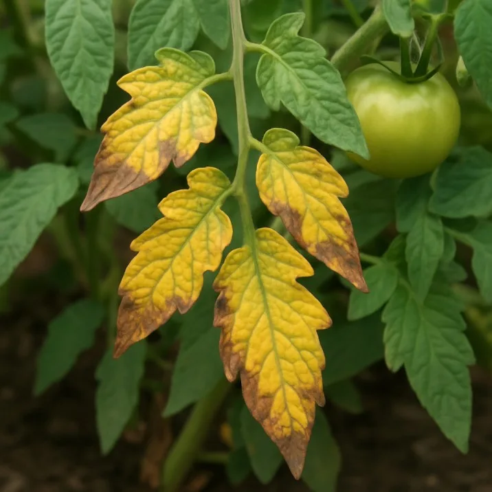 Yellowing leaves on a tomato plant